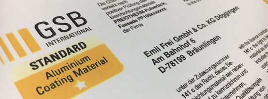 Zulassung FREIOTHERM-Pulverlack Fassade PF1001